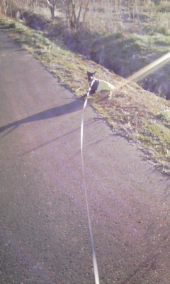 ジャスミンのリードをかじって阻止するキャメロン。